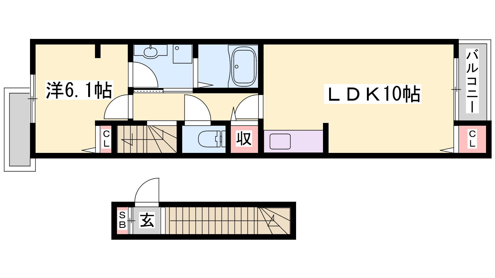 - LDK10帖、洋室6.1帖