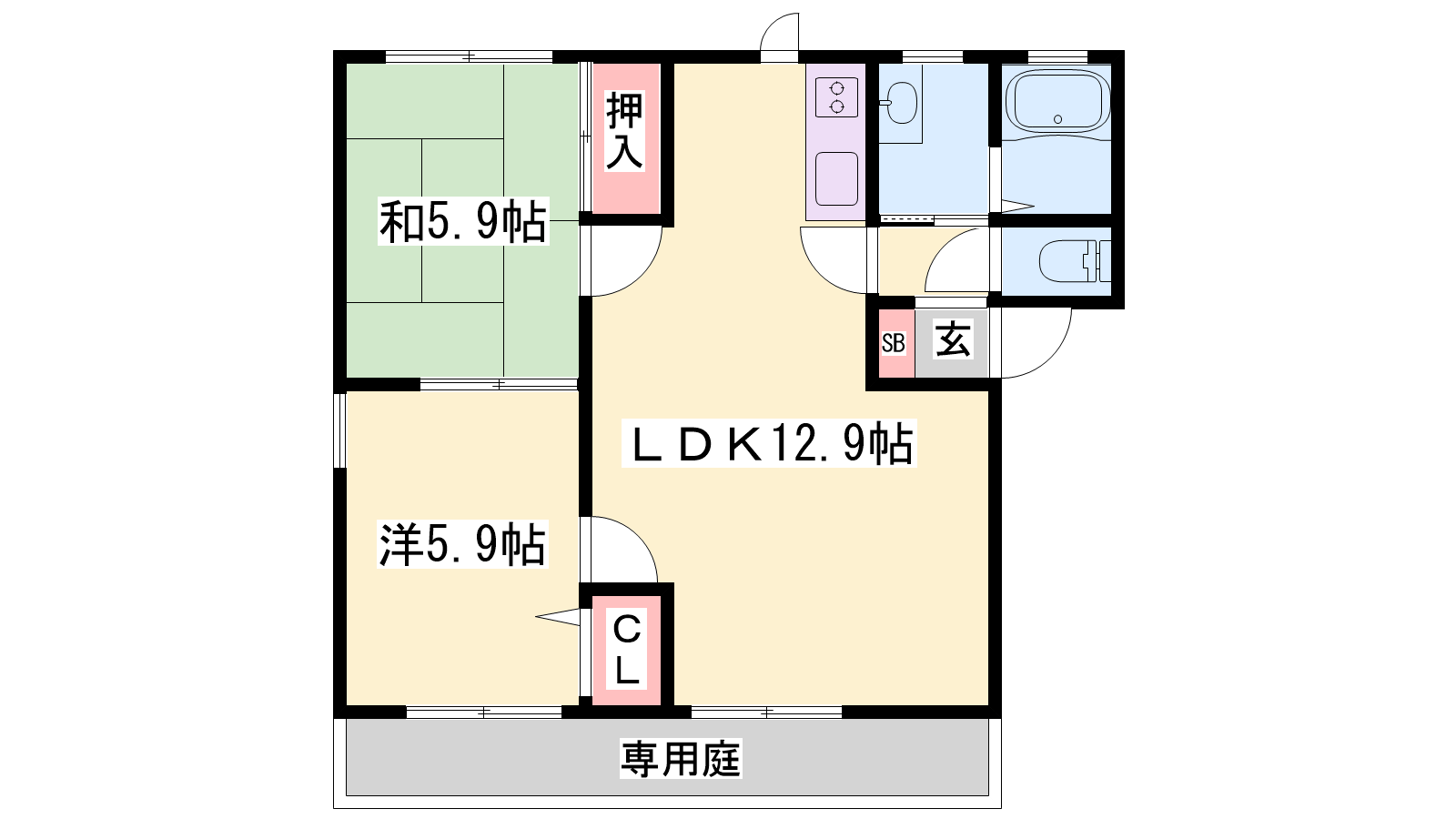 - LDK12.9帖、洋室5.9帖、和室5.9帖