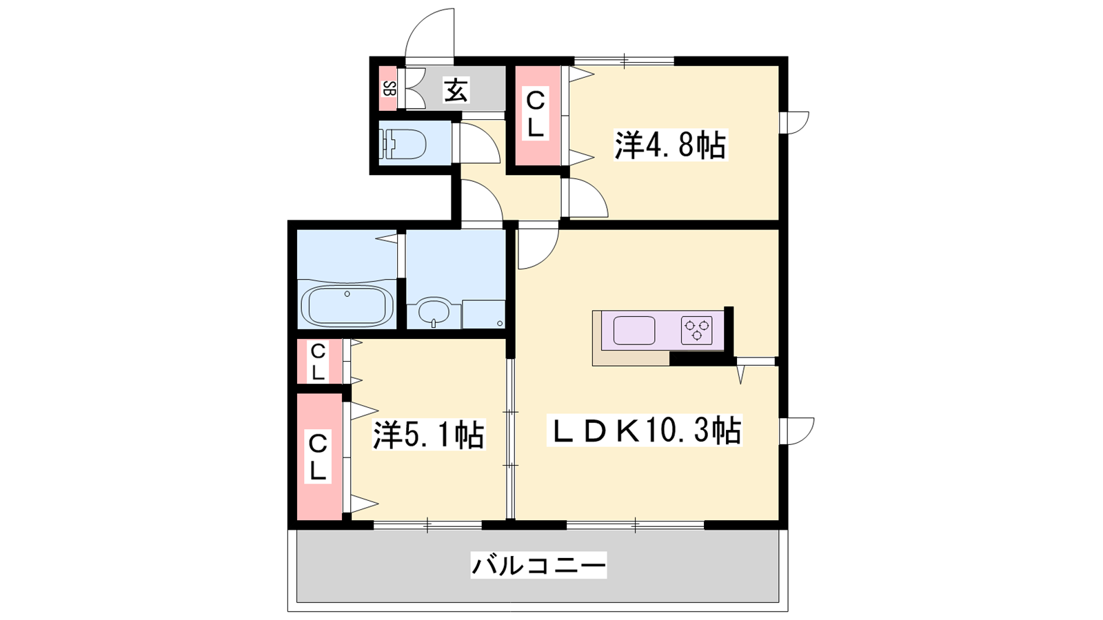 - LDK10.3帖、洋室5.1帖、洋室4.8帖