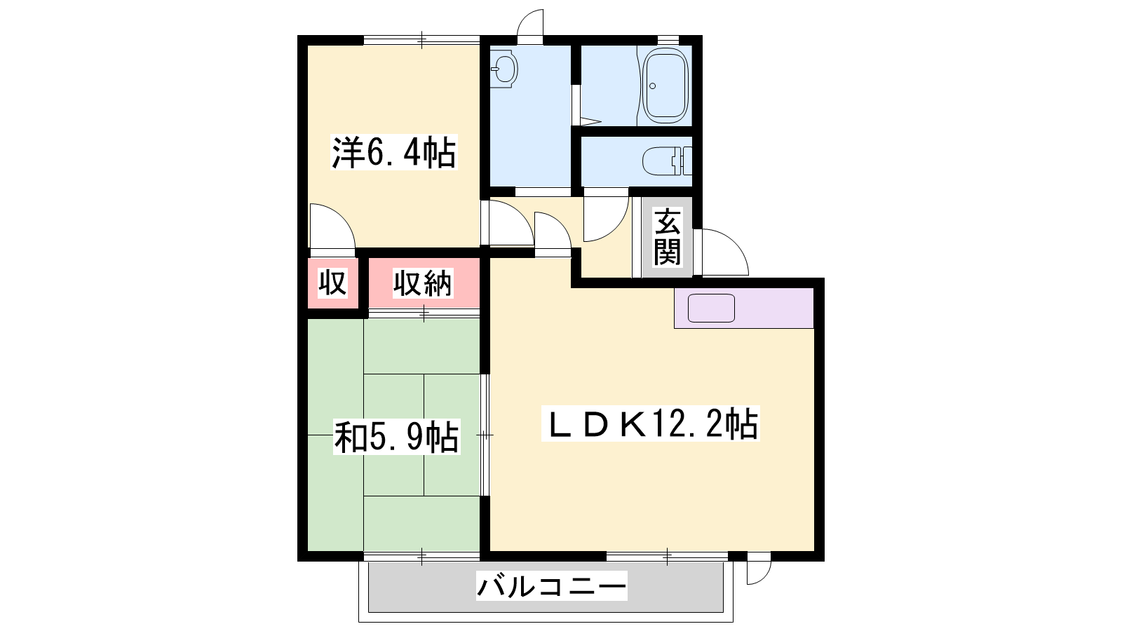 - LDK12.2帖、和室5.9帖、洋室6.4帖