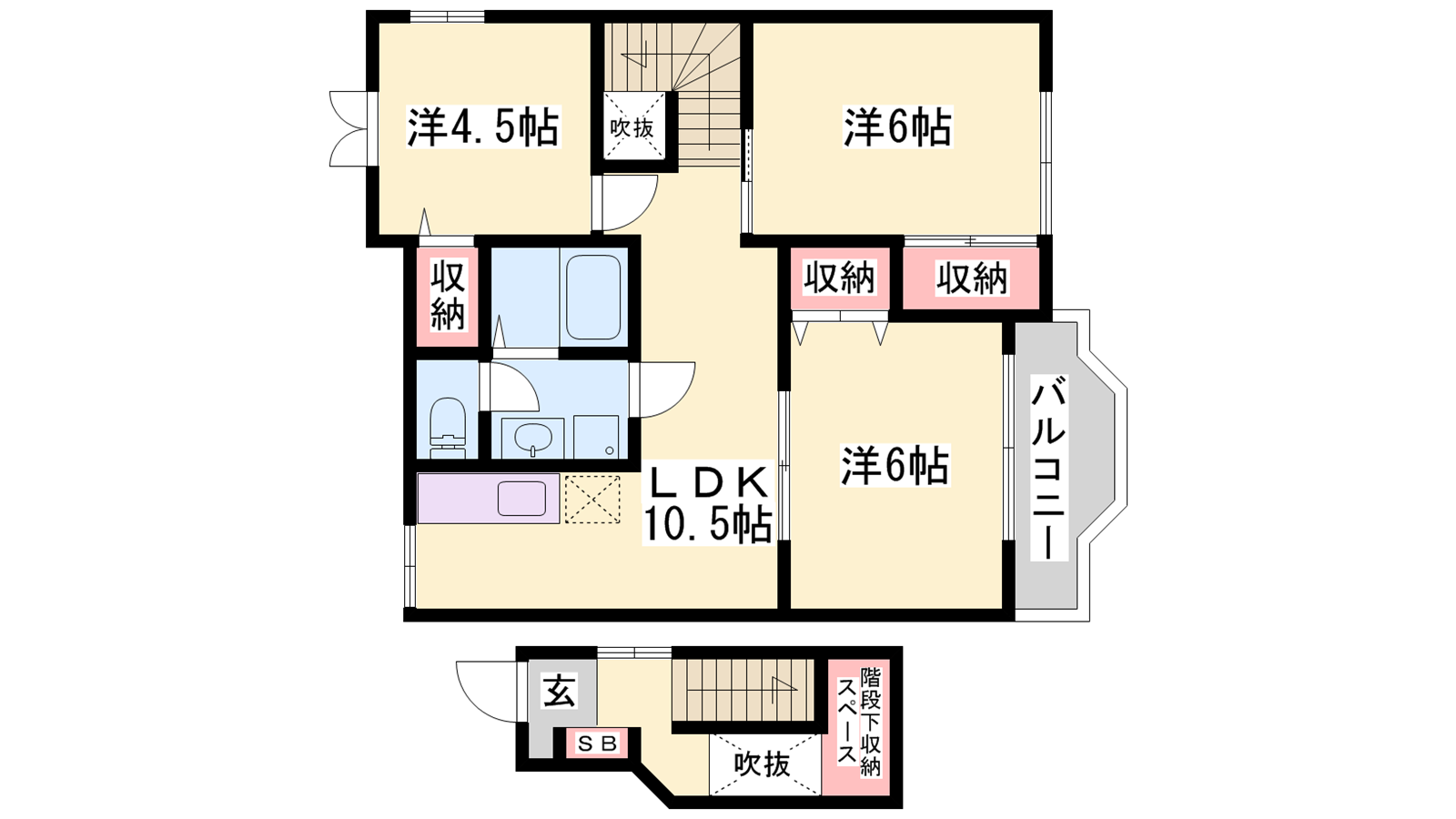 - LDK10.5帖、洋室6帖、洋室6帖、洋室4.5帖