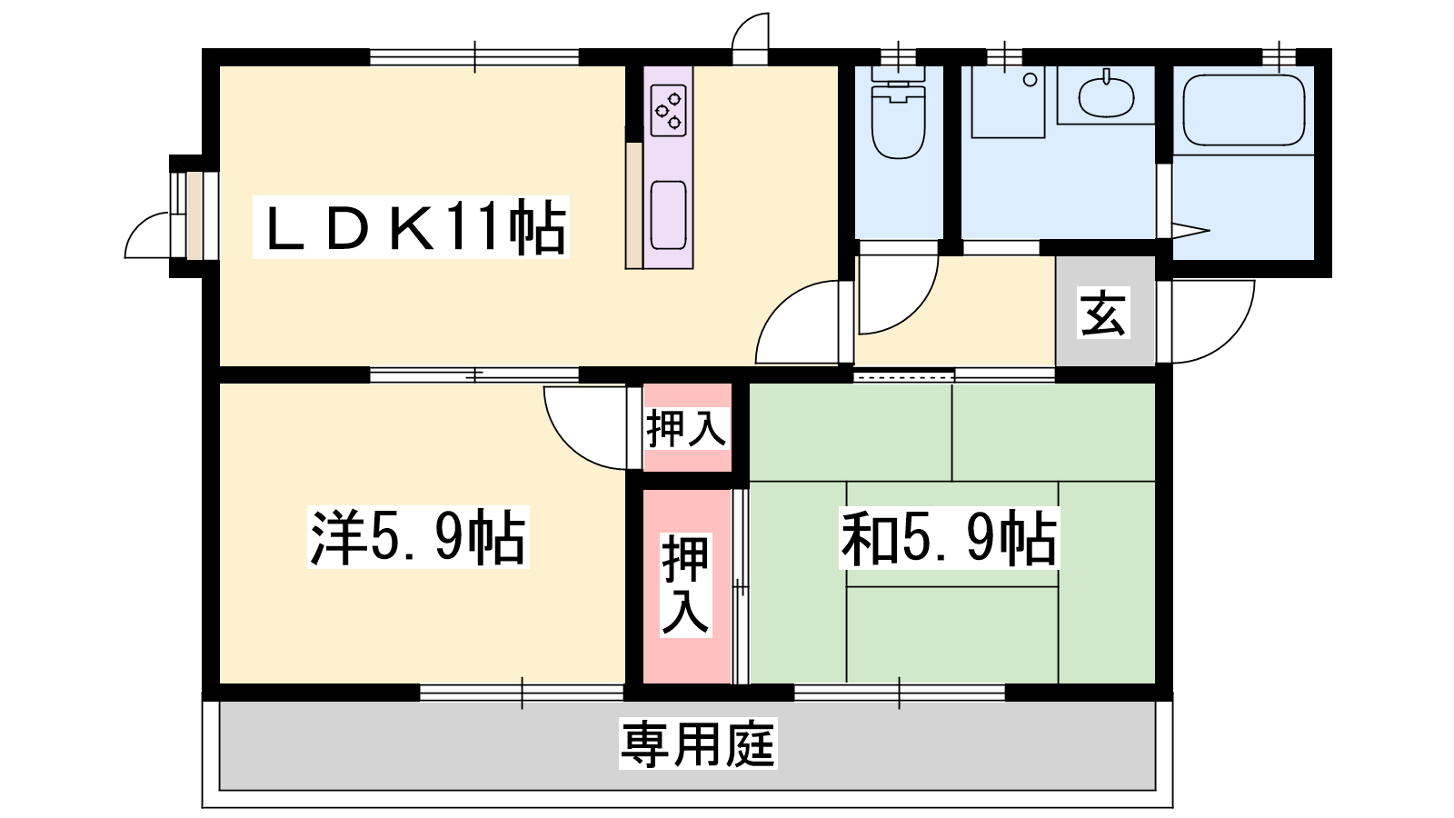 - LDK11帖、洋室5.9帖、和室5.9帖