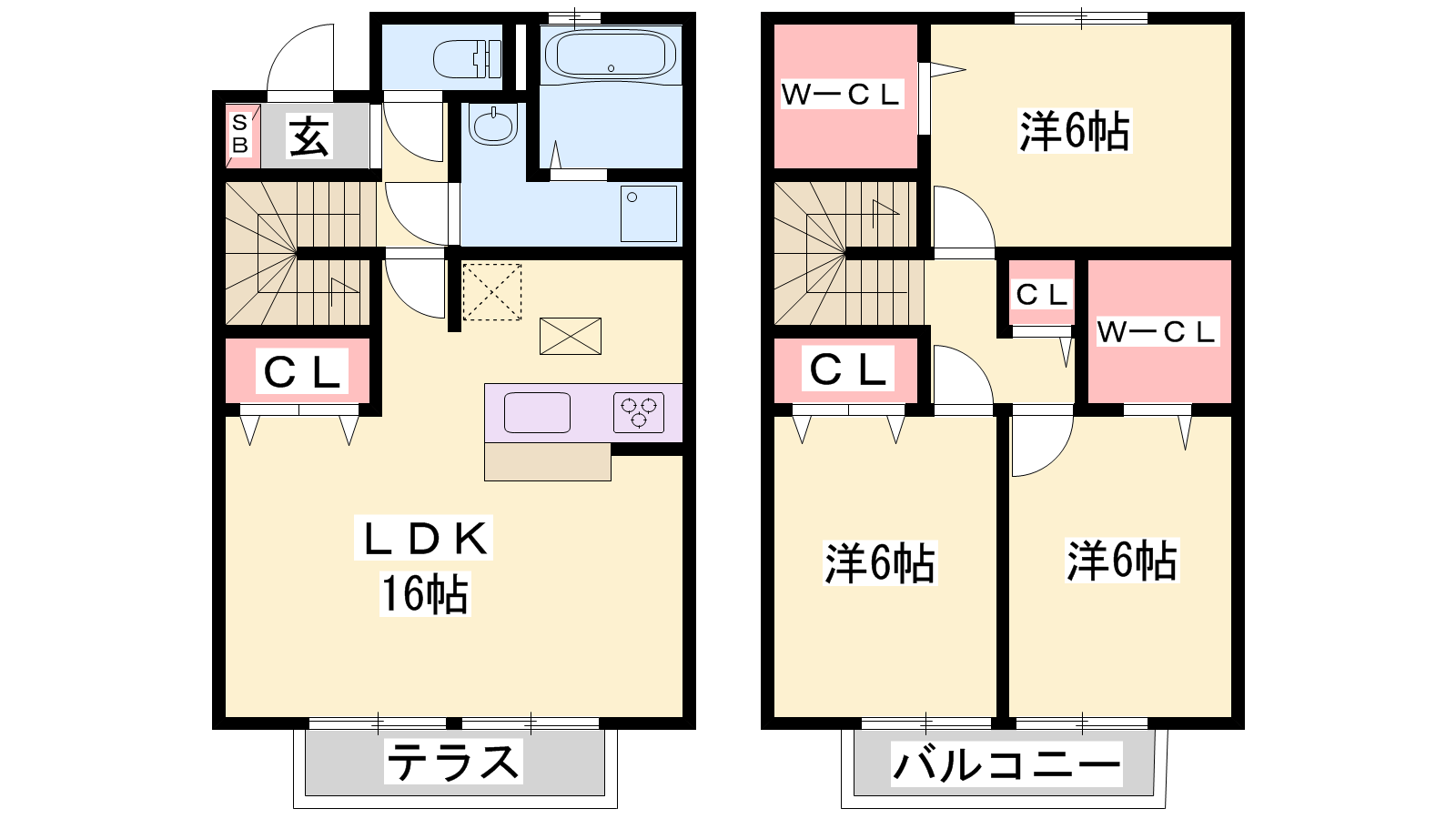 - LDK16帖、洋室6帖、洋室6帖、洋室6帖