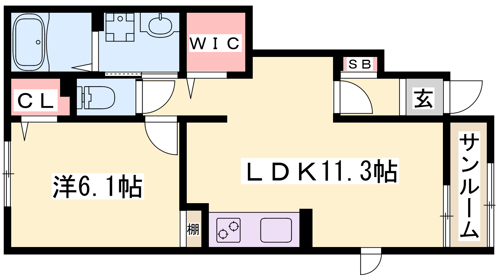 - LDK11.3帖、洋室6.1帖