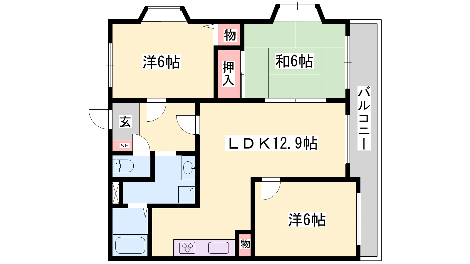 - LDK12.9帖、洋室6帖、洋室5帖、和室6帖