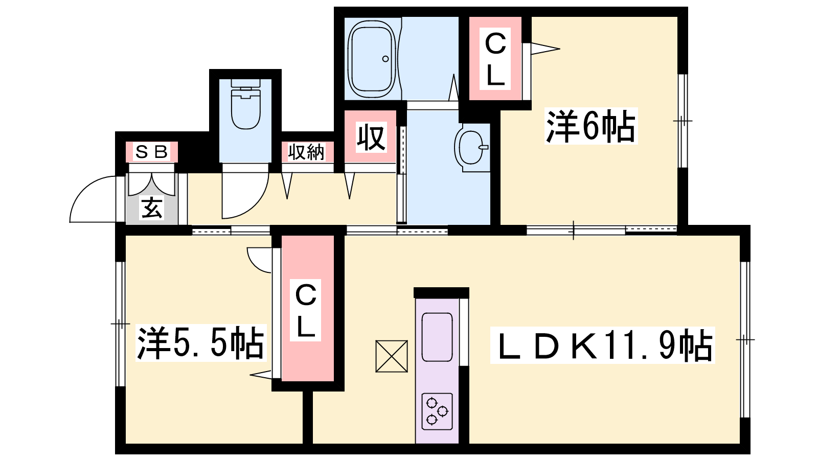- LDK11.9帖、洋室6帖、洋室5.5帖