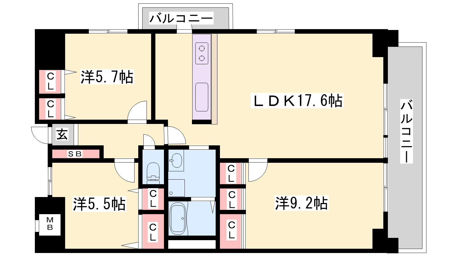 - LDK17.6帖、洋室9.2帖、洋室5.7帖、洋室5.5帖