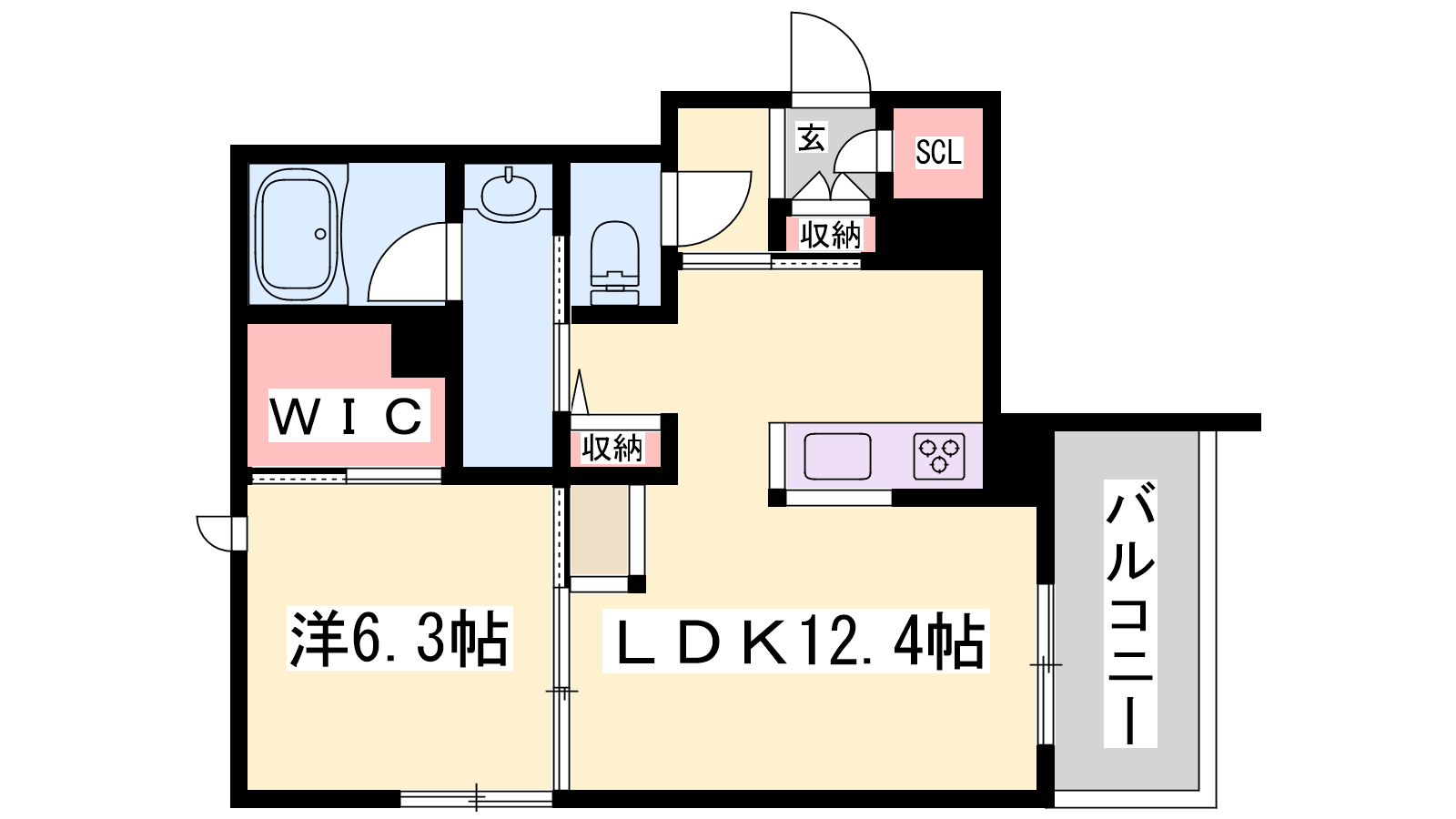 - LDK12.4帖、洋室6.3帖