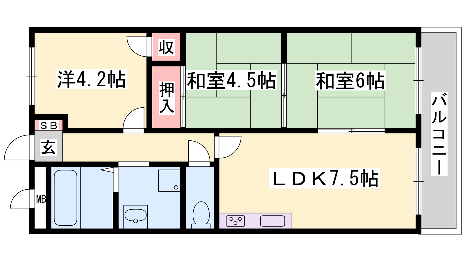 - LDK7.5帖、和室6帖、和室4.5帖、洋室4.2帖