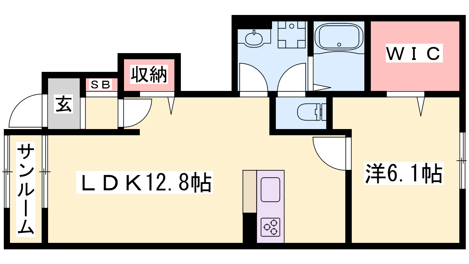 - LDK12.8帖、洋室6.1帖