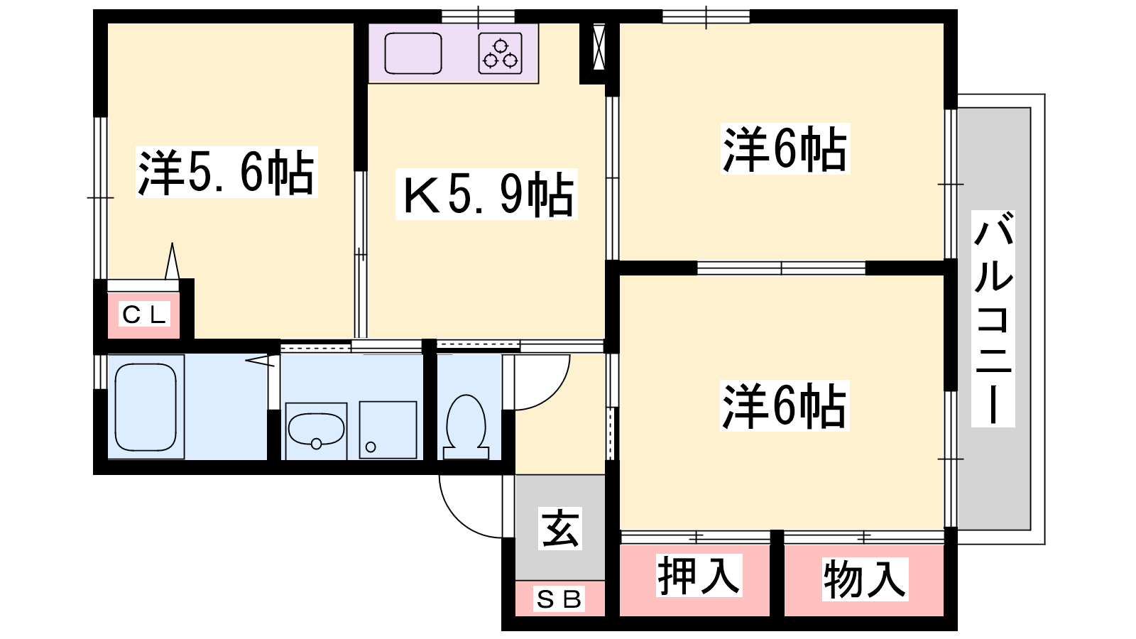 - K5.9帖、洋室6帖、洋室5.6帖、洋室6帖