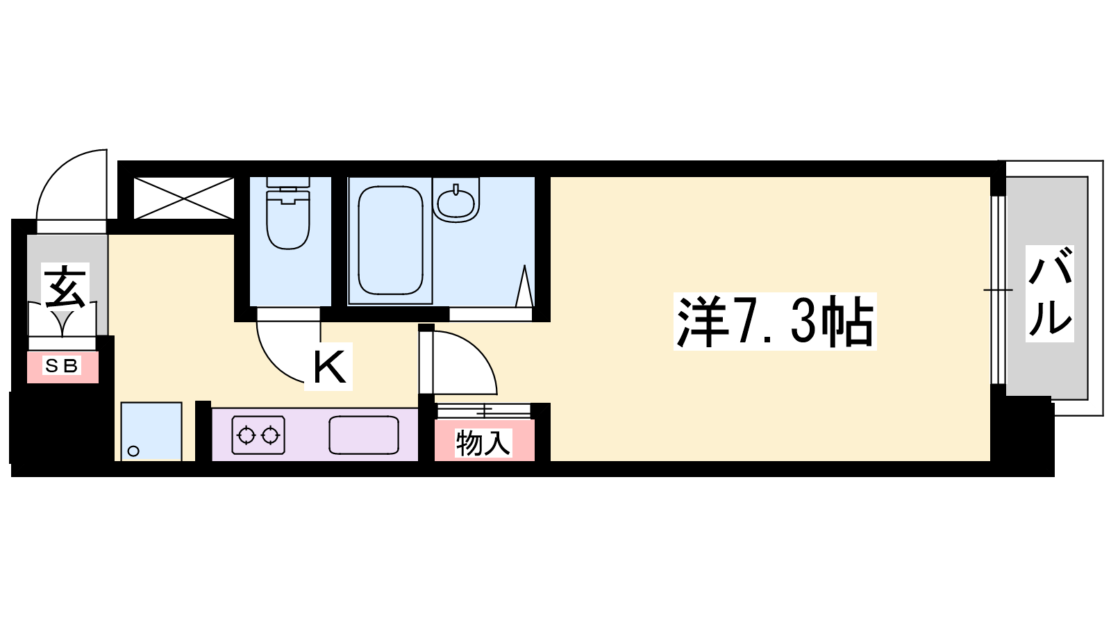- K2帖、洋室7.3帖