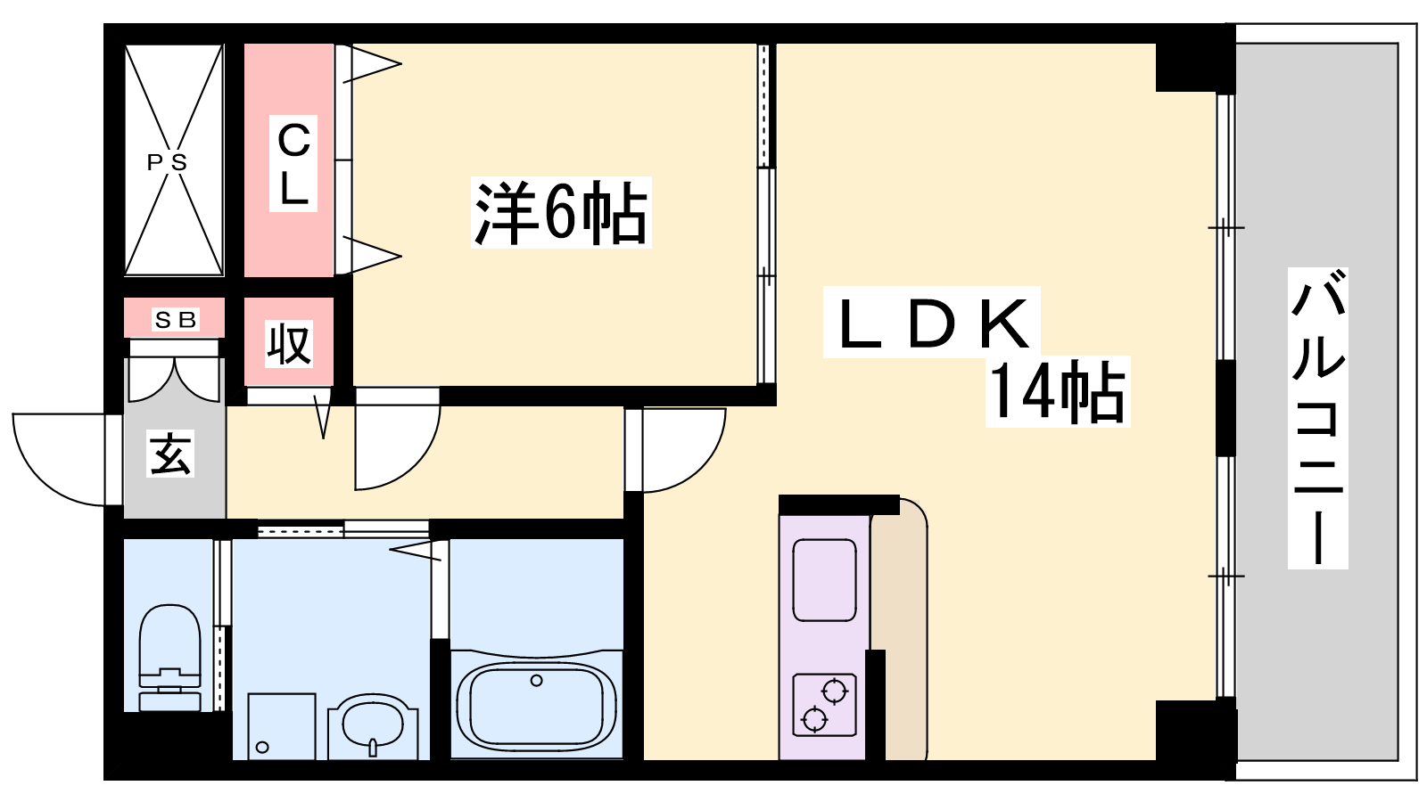 - LDK14帖、洋室6帖