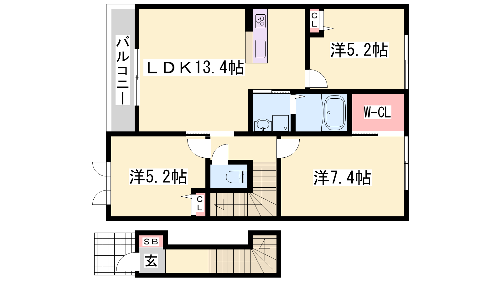 - LDK13.4帖、洋室7.4帖、洋室5.2帖、洋室5.2帖