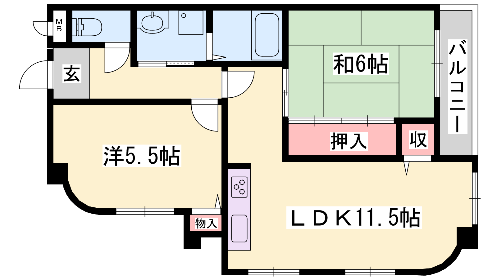 - LDK11.5帖、洋室5.5帖、和室6帖