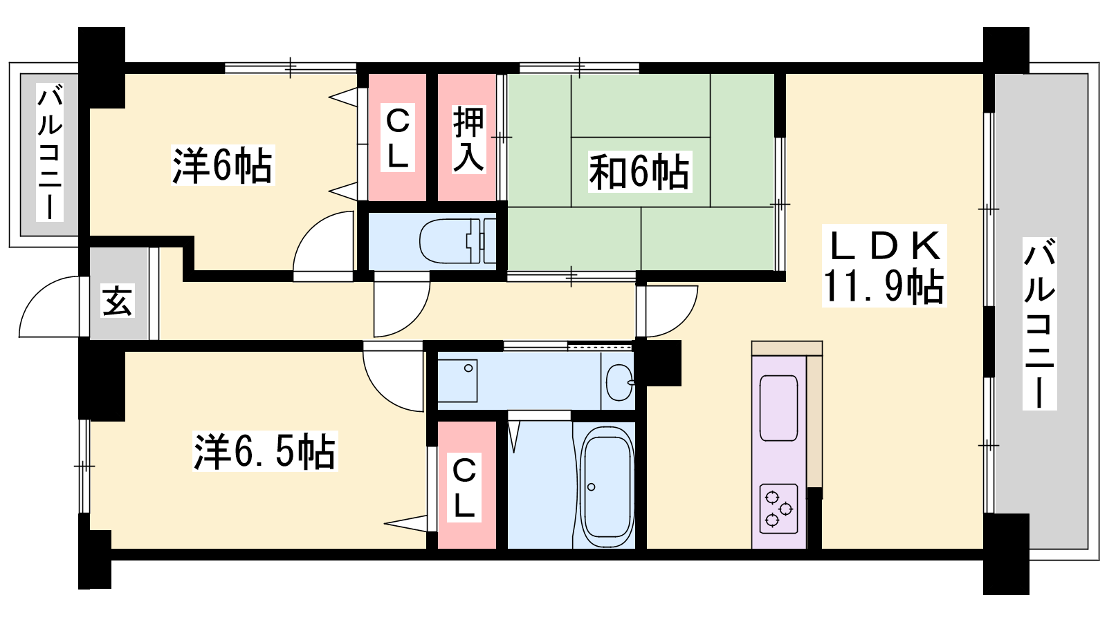 - LDK11.9帖、和室6帖、洋室6.5帖、洋室6帖