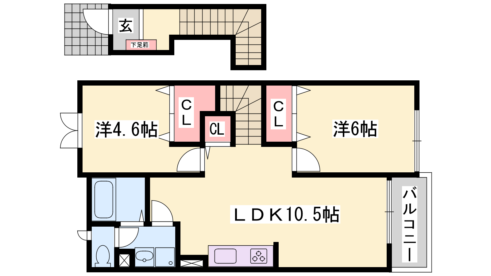 - LDK10.5帖、洋室6帖、洋室4.6帖