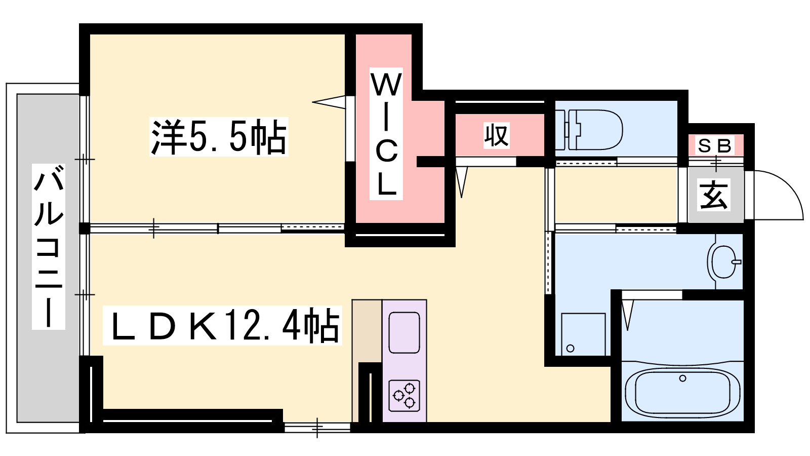 - LDK12.4帖、洋室5.5帖