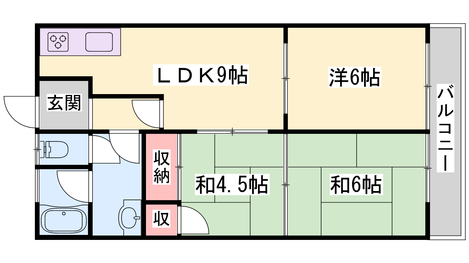 - LDK9帖、洋室6帖、和室4.5帖、和室6帖