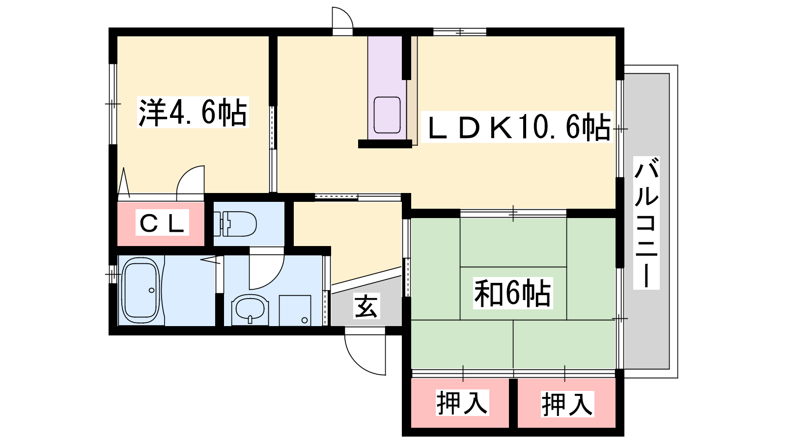 - LDK10.6帖、洋室4.6帖、和室6帖