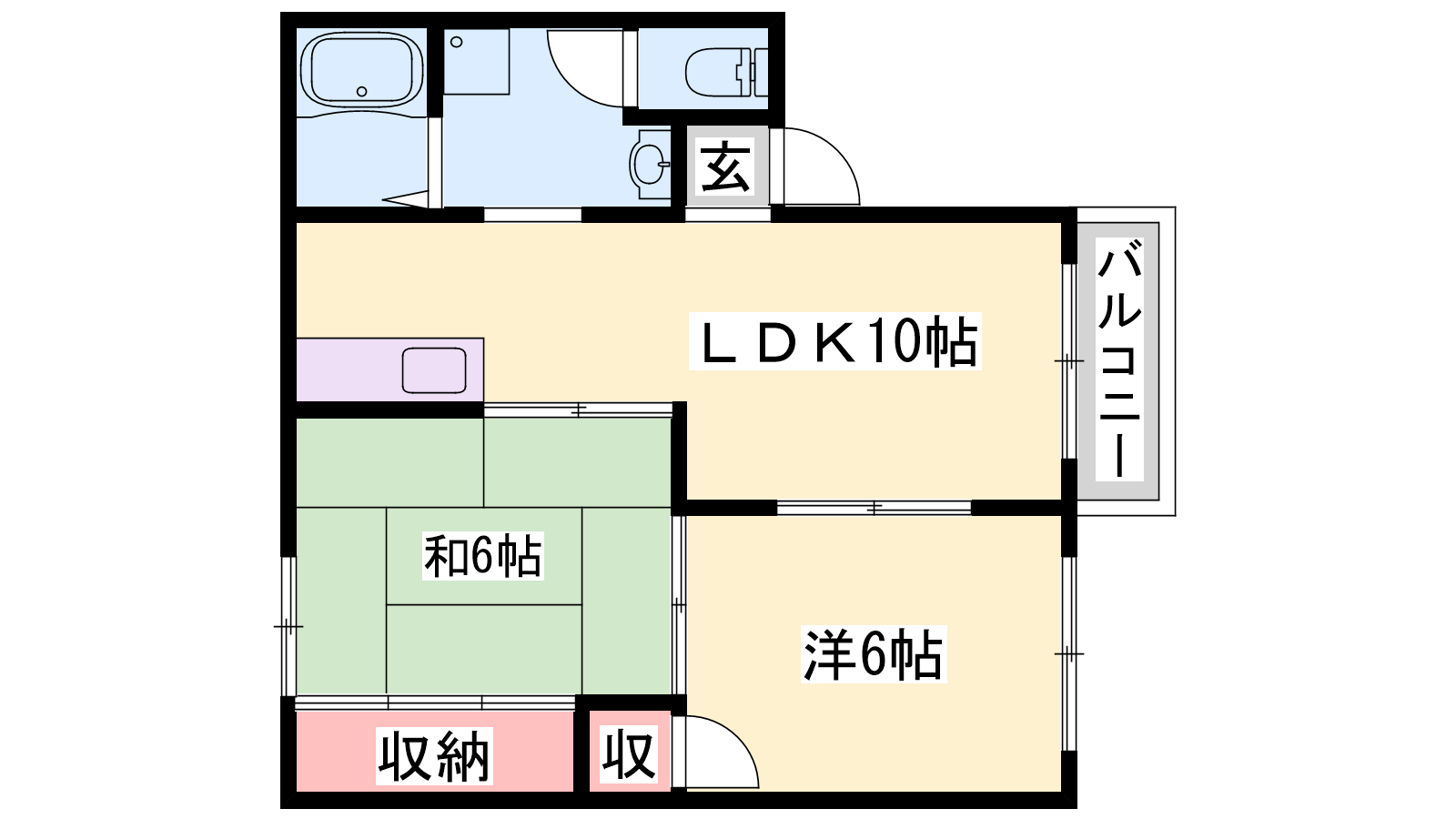 - LDK10帖、洋室6帖、和室6帖