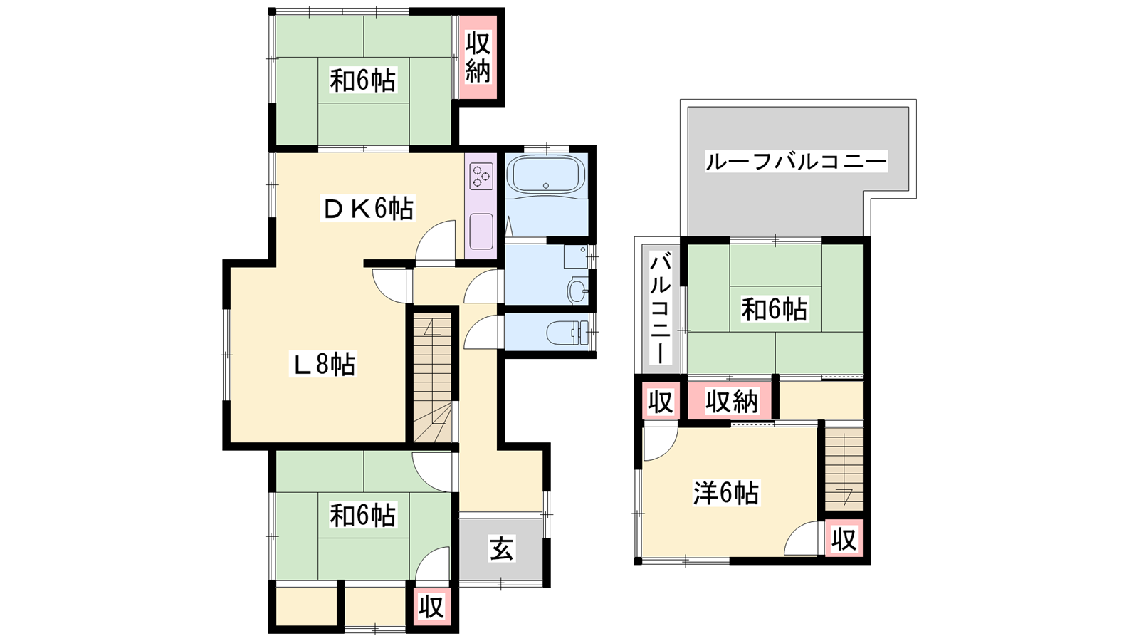 - LDK14帖、洋室6帖、和室6帖、和室6帖、和室6帖
