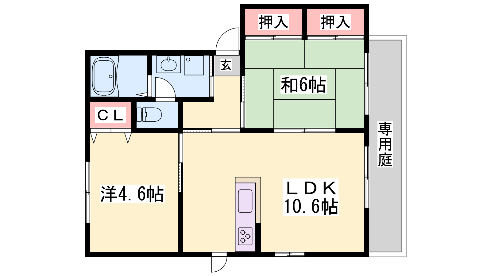 - LDK10.6帖、洋室4.6帖、和室6帖