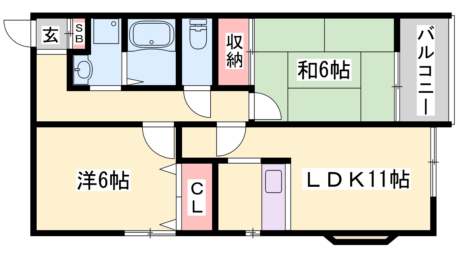 - LDK11帖、洋室6帖、和室6帖