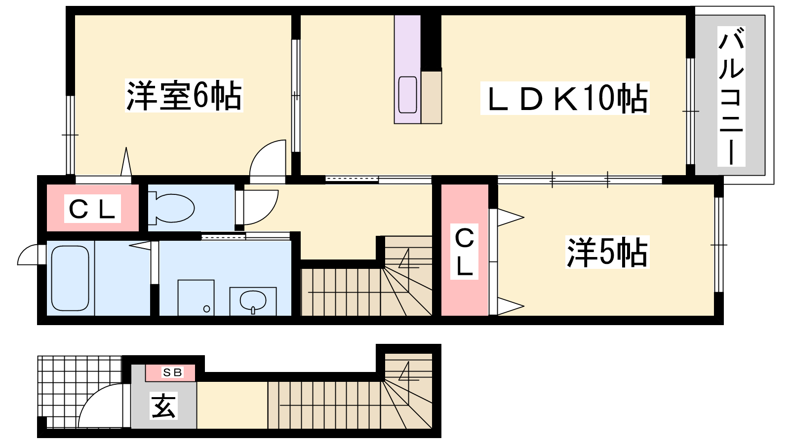 - LDK10帖、洋室6帖、洋室5帖
