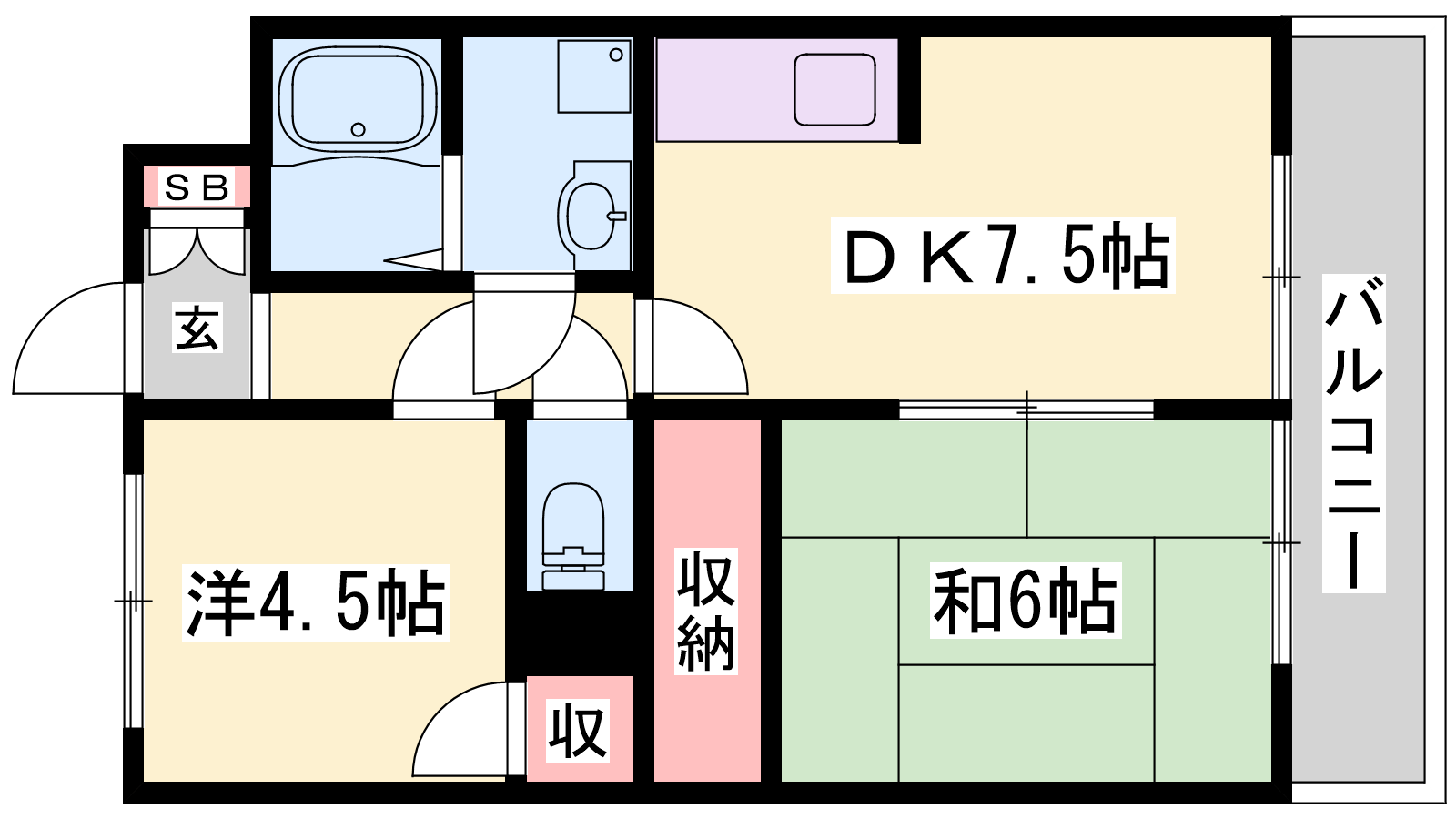 - DK7.5帖、洋室4.5帖、和室6帖