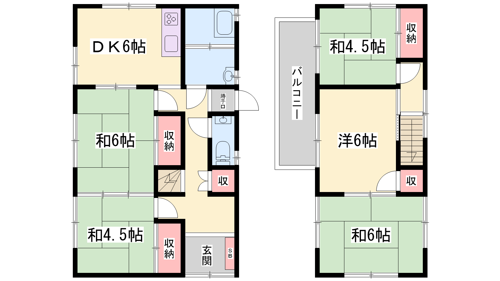 - DK6帖、洋室6帖、和室6帖、和室6帖、和室4.5帖、和室4.5帖