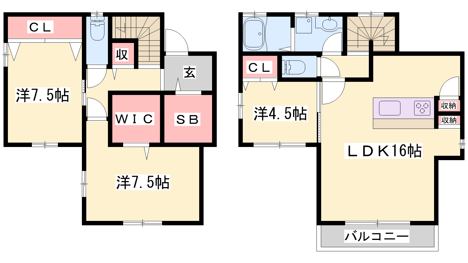 - LDK16帖、洋室7.5帖、洋室7.5帖、洋室4.5帖