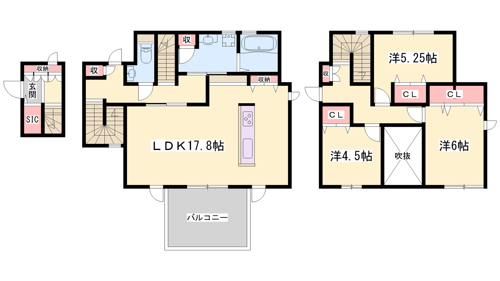 - LDK17.8帖、洋室6帖、洋室5.25帖、洋室4.5帖