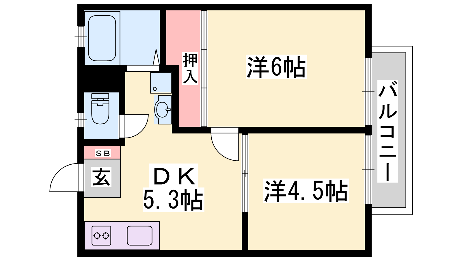 - DK5.3帖、洋室6帖、洋室4.5帖