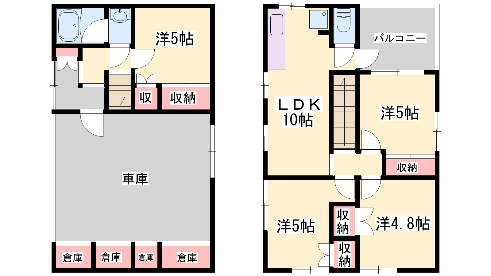 - LDK10帖、洋室5帖、洋室5帖、洋室4.5帖、洋室4.5帖
