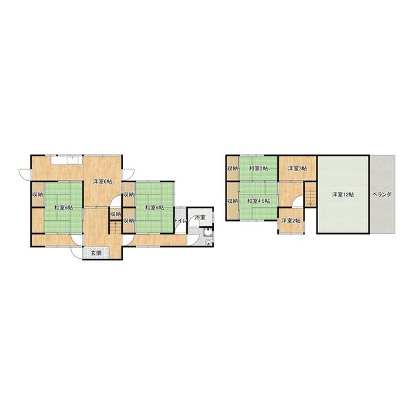 - LDK9帖、洋室12帖、洋室6帖、洋室3帖、和室6帖、和室6帖、和室4.5帖、和室3帖