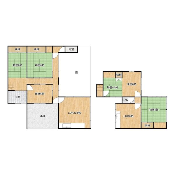 - LDK12.5帖、洋室8帖、洋室6帖、洋室6帖、和室8帖、和室8帖、和室6帖、和室4.5帖