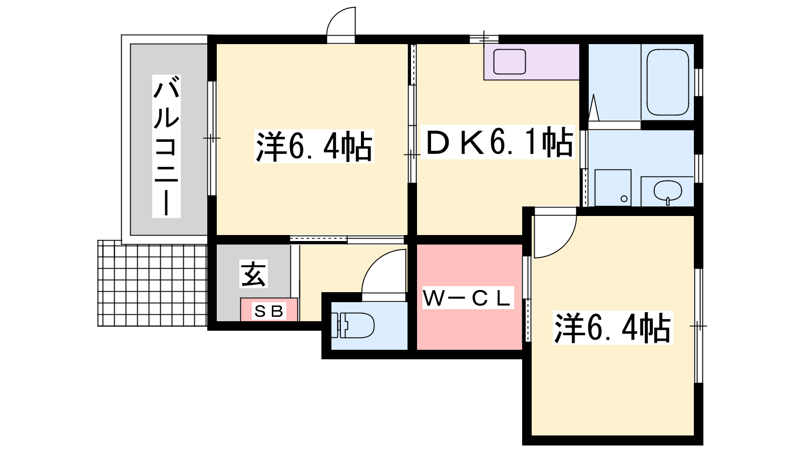 - DK6.1帖、洋室6.4帖、洋室6.4帖