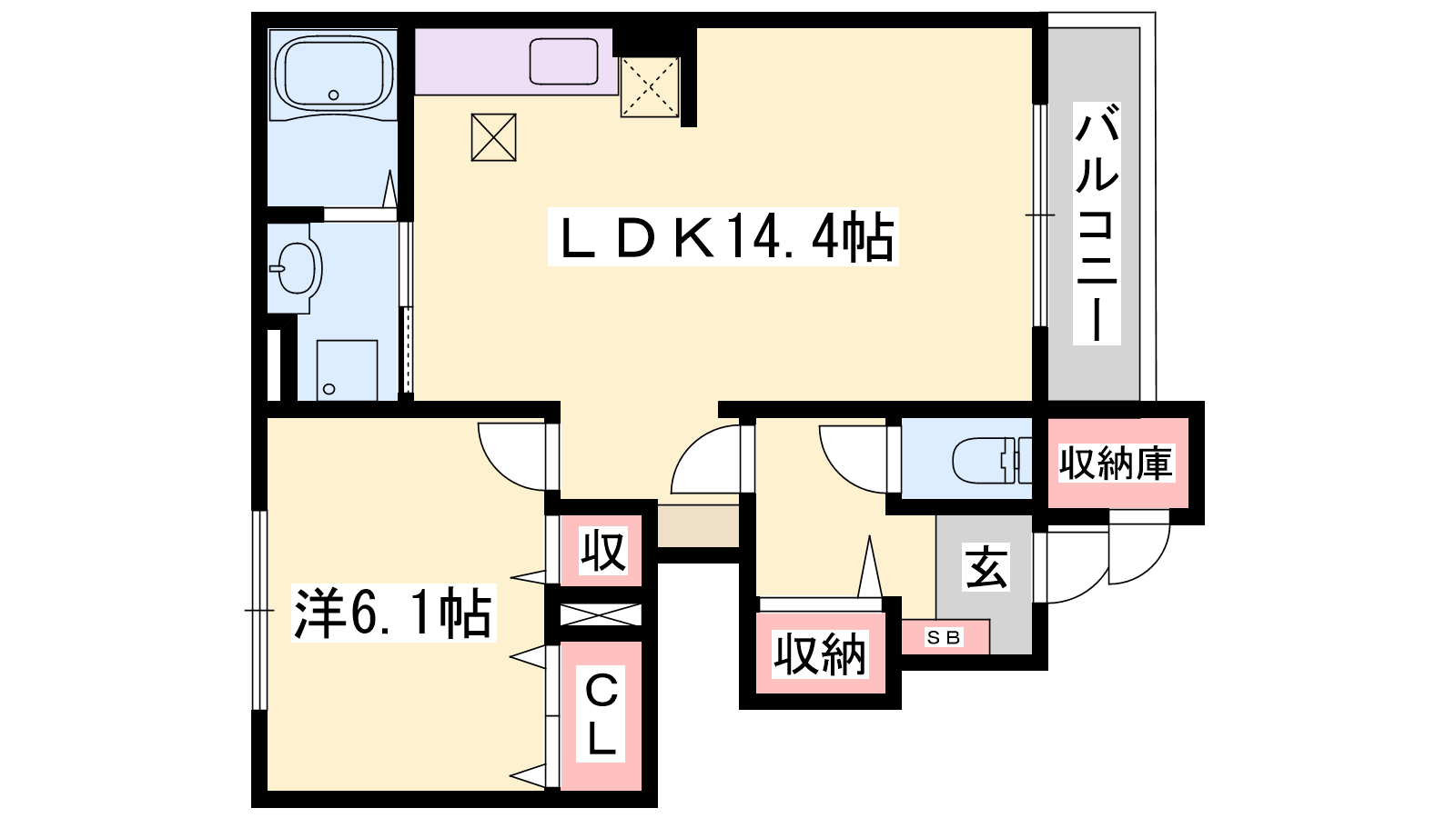 - LDK14.4帖、洋室6.1帖