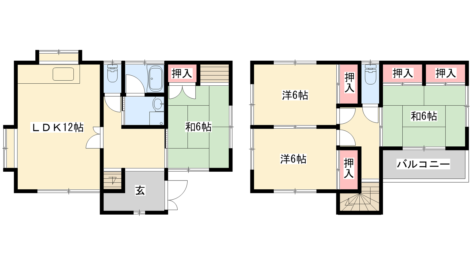 - LDK12帖、洋室6帖、洋室6帖、和室6帖、和室6帖