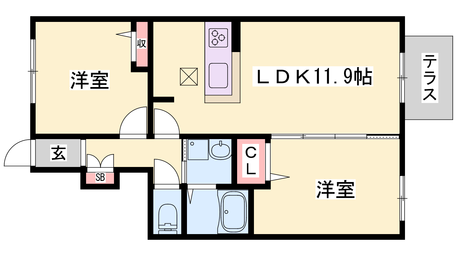 - LDK11.9帖、洋室6帖、洋室5.9帖