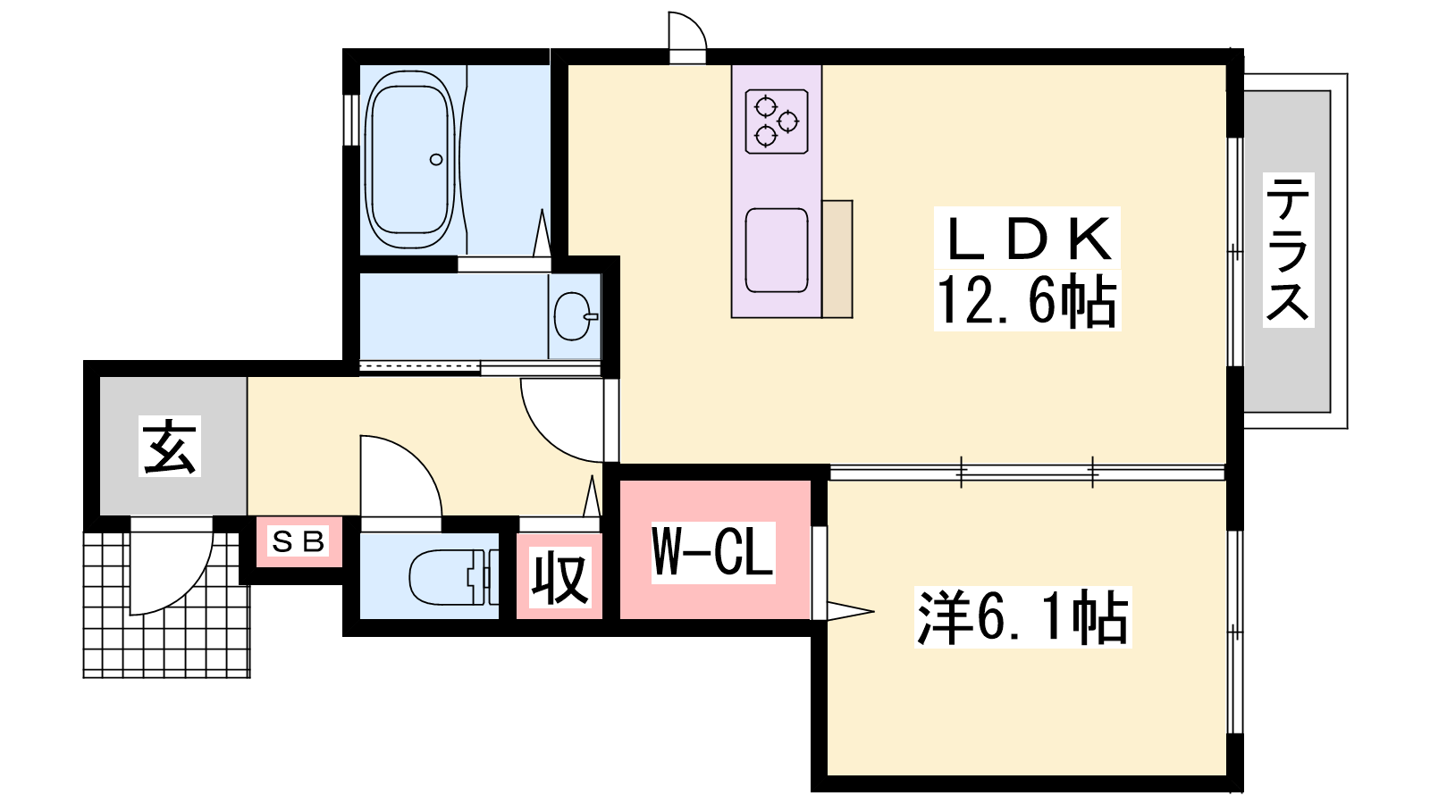 - LDK12.6帖、洋室6.1帖