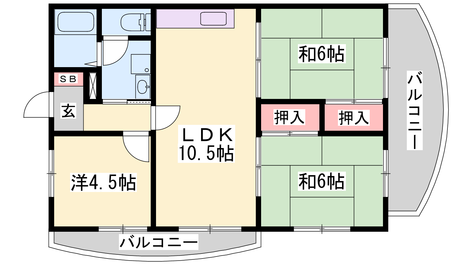 - LDK10.5帖、洋室4.5帖、和室6帖、和室6帖