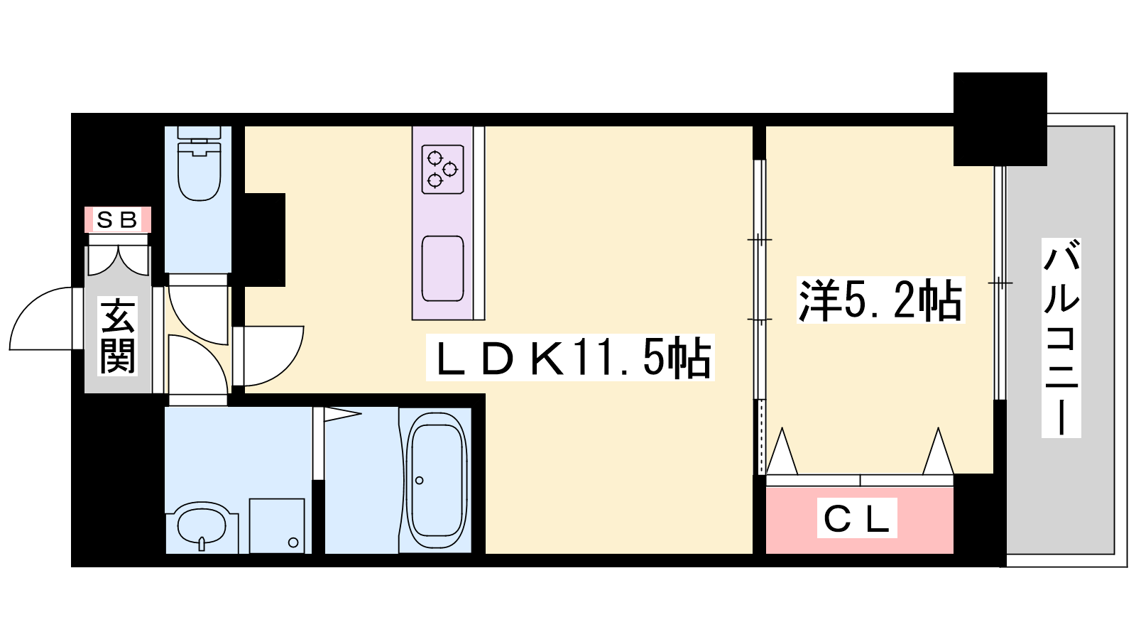 - LDK11.5帖、洋室5.2帖