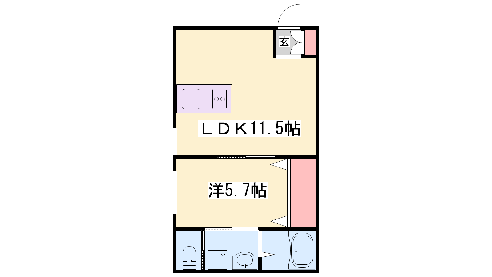 - LDK11.5帖、洋室5.7帖