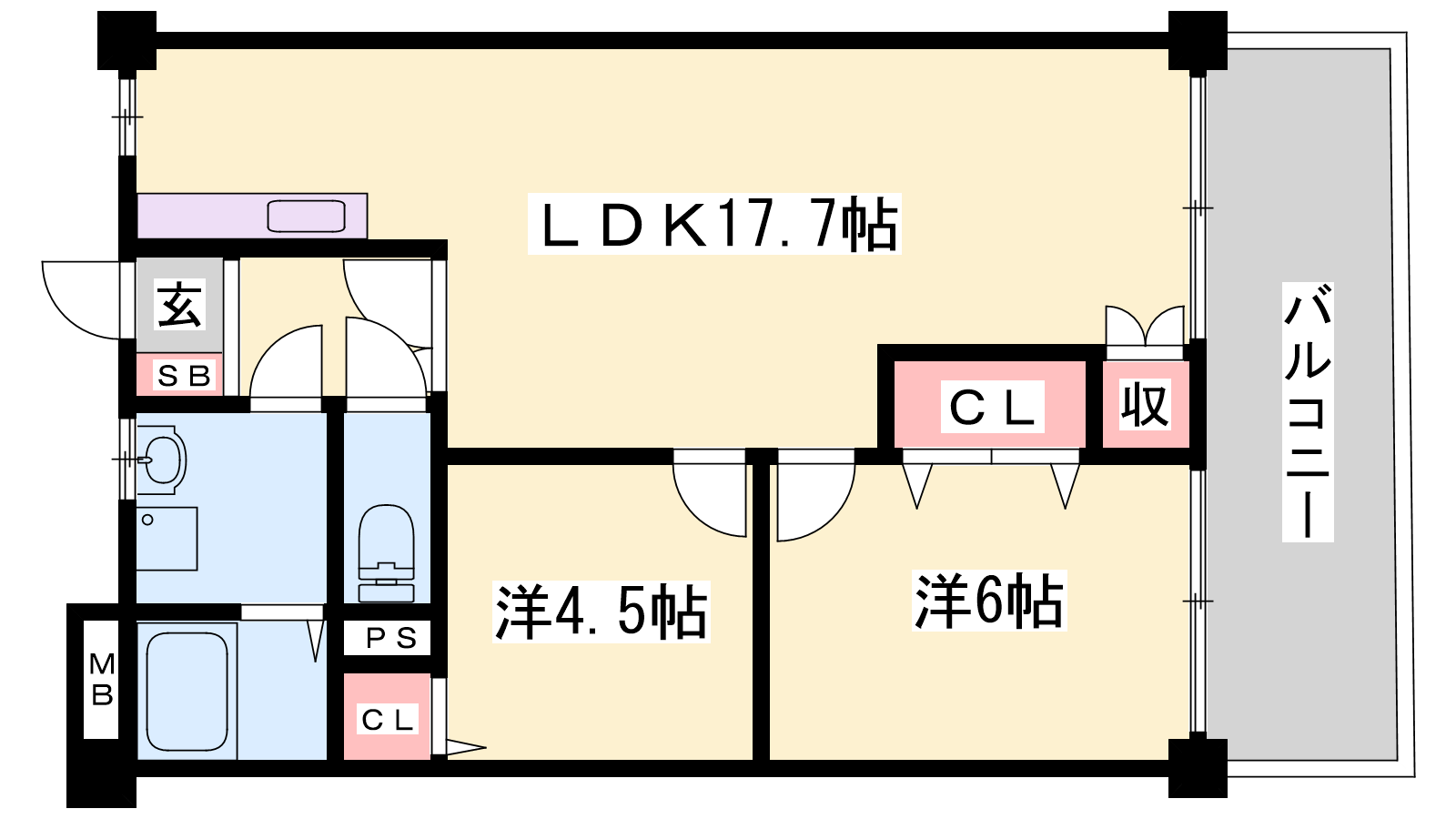 - LDK17.7帖、洋室6帖、洋室4.5帖