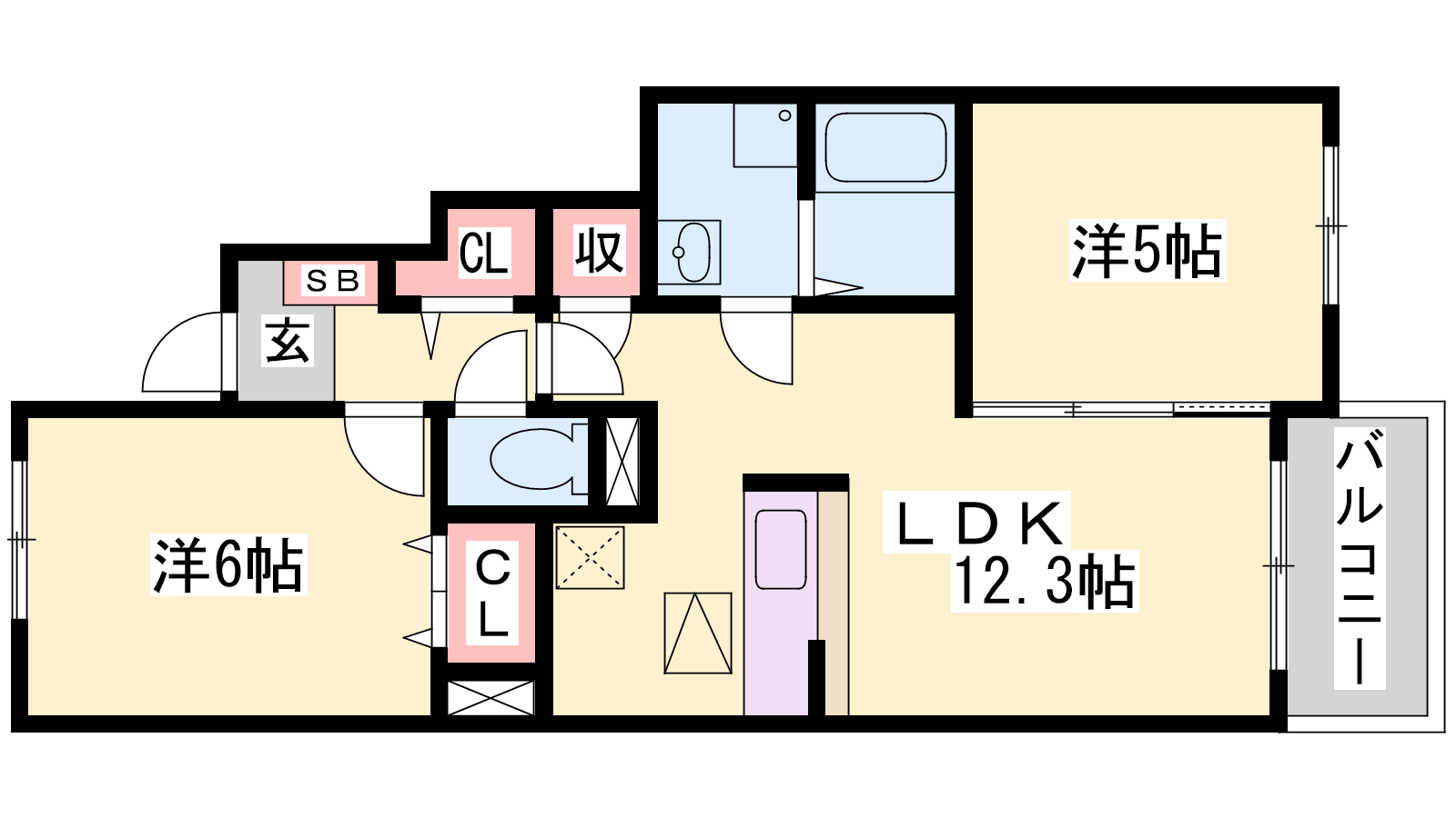 - LDK12.3帖、洋室6帖、洋室5帖