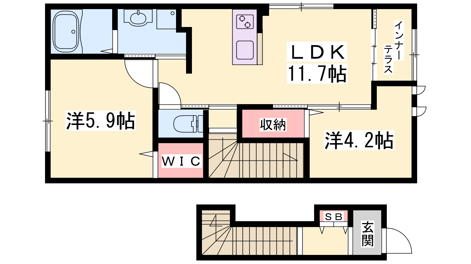 - LDK10帖、洋室5.9帖、洋室4.2帖