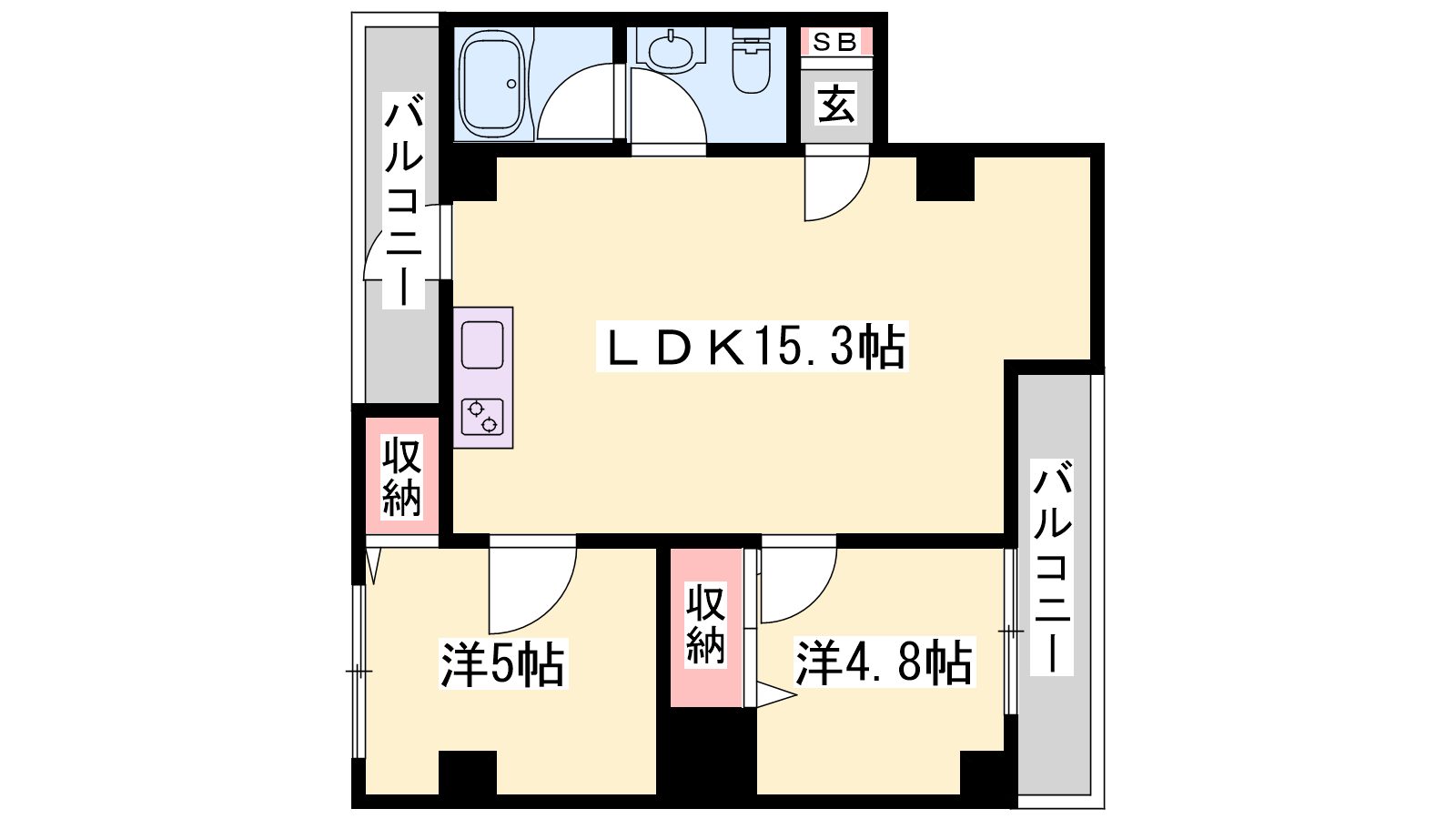 - LDK15.3帖、洋室5帖、洋室4.8帖
