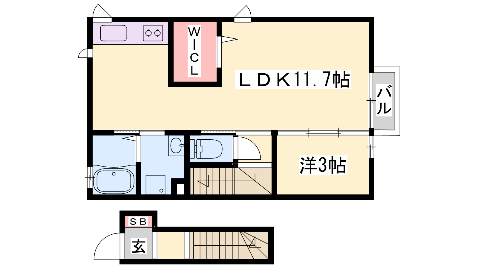 エアコン1台完備!広々ウォークインクローゼット!日当たり良好。